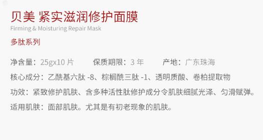 【产品名称】:贝美 紧实滋润修护面膜10片