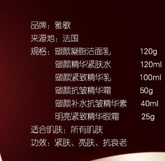 【产品名称】:雅歌羊胎素塑颜紧致补水抗皱套装抗衰老保湿提拉紧致去纹